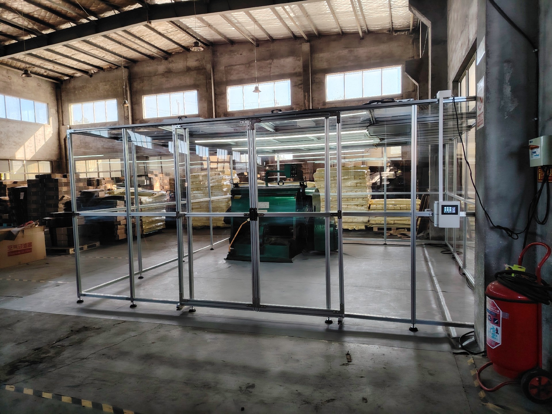 潔凈棚尺寸為5000*5000*2200主體材質(zhì)選用鋁型材,隔離材質(zhì)選用透明度高的亞格力板,搭配六個百級凈化單元,經(jīng)檢測公司檢測后可達千級標(biāo)準(zhǔn)。