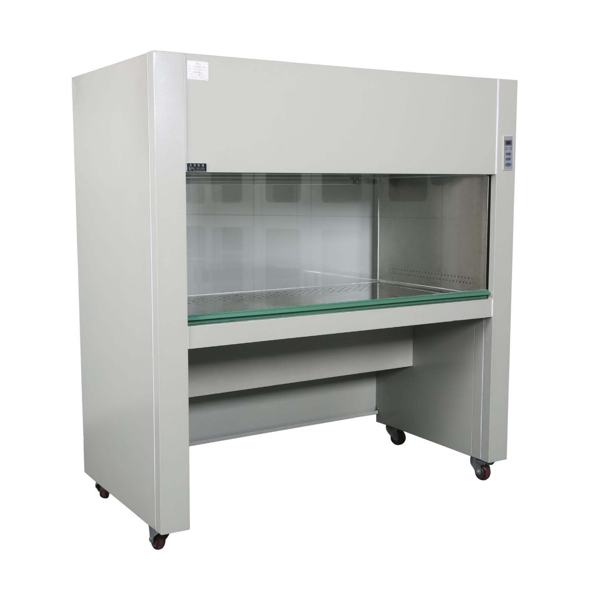 5、超凈工作臺(tái)面配有可調(diào)節(jié)高度的腳輪,移動(dòng)方便;
