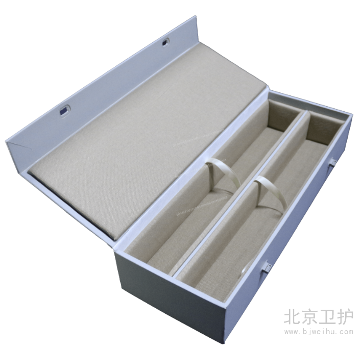 文物囊匣就是文物工作者根據(jù)文物的材質(zhì)、形狀、器形的大小、重量等多種因素,選用特殊的材料和多種多樣的制作方法為每一件文物設(shè)計(jì)制作的外包裝容器,這種傳統(tǒng)的包裝工藝技術(shù)屬于特種包裝。囊匣以對(duì)文物無(wú)害的無(wú)酸紙為主要材質(zhì),根據(jù)文物的質(zhì)地、尺寸、形狀,為每件文物量身制作,分為搖蓋式、折頁(yè)式、天地蓋式等不同類型。